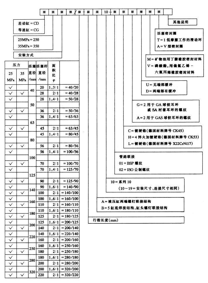 | 活塞直径 | 40 | 50 | 63 | 80 | 100 | 125 | 140 | 160 | 180 | 200 | 220 | 250 | 280 | 320 | ||||||