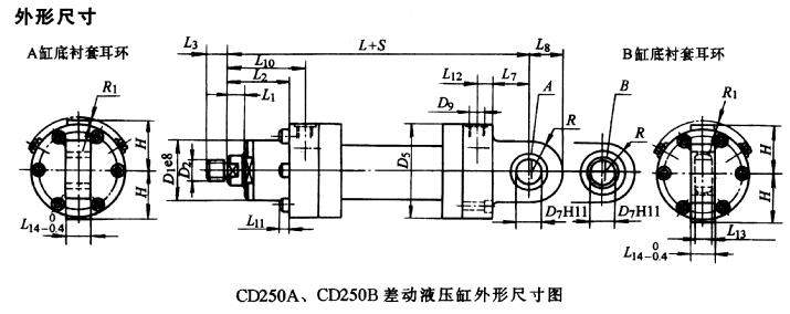 | 活塞杆直径 | 110 | 125 | 140 | 160 | 180 | 200 | 220 | ||