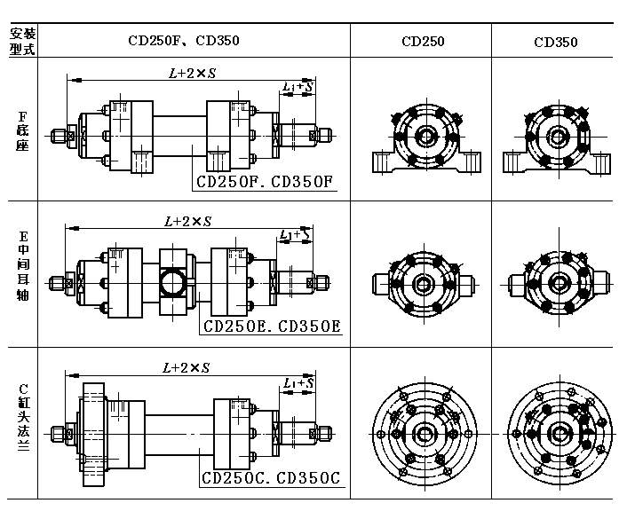 | CD型单活塞杆双作用缸 | CG型双活塞杆双作用缸 | |